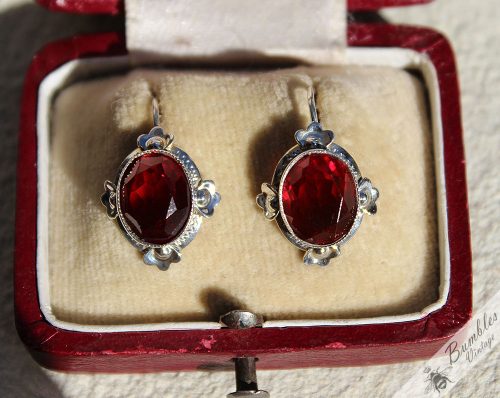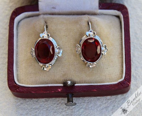 Vintage European Bohemian Silver Art Deco Lever Earring Simulated Garnet