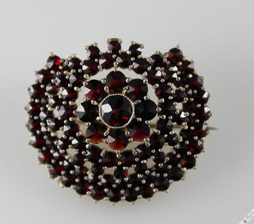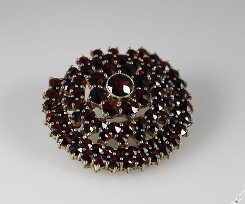 Vintage Rose Cut Bohemian Garnet Silver Round 4 Tier Brooch Antique