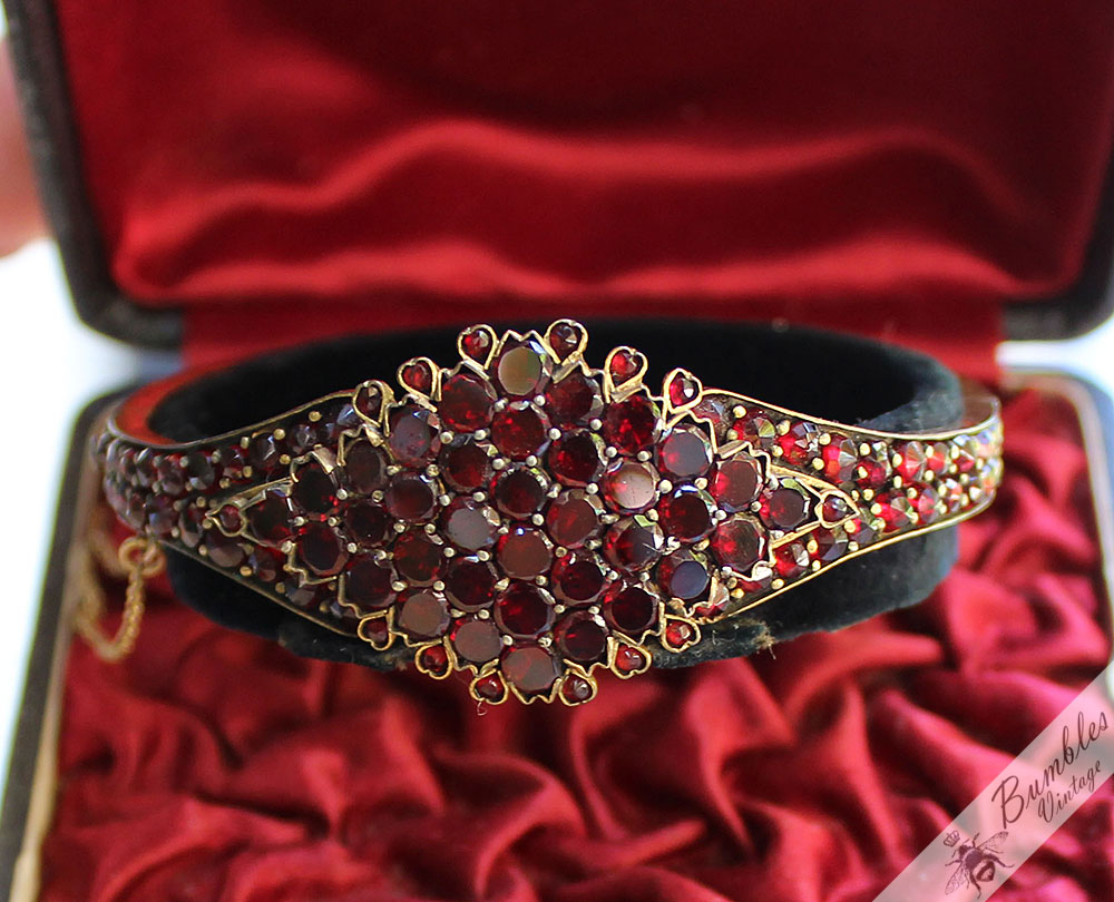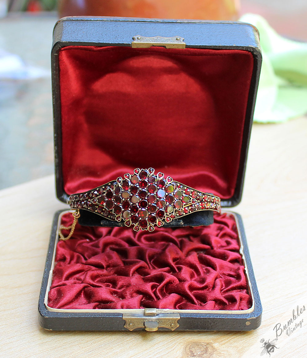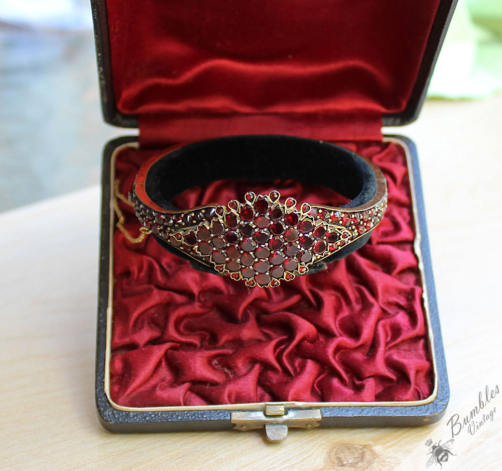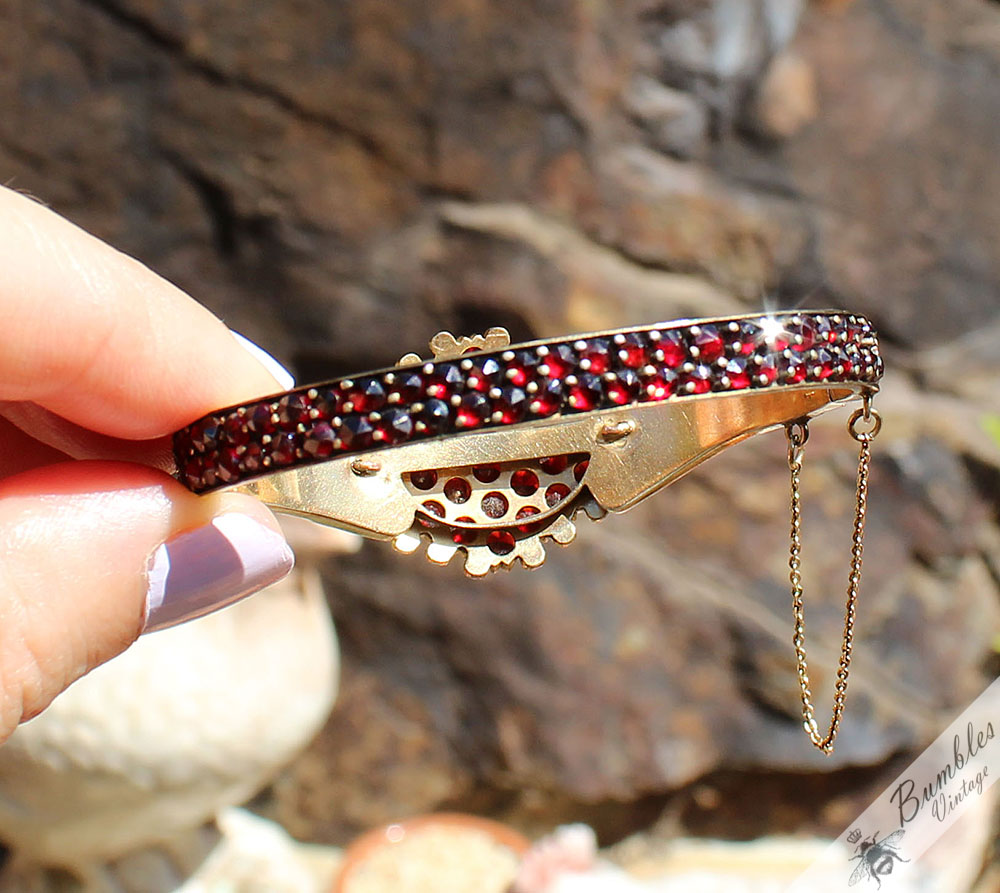 Antique Victorian Bohemian Garnet Table Top Cut Cluster Love Heart Bracelet (small)