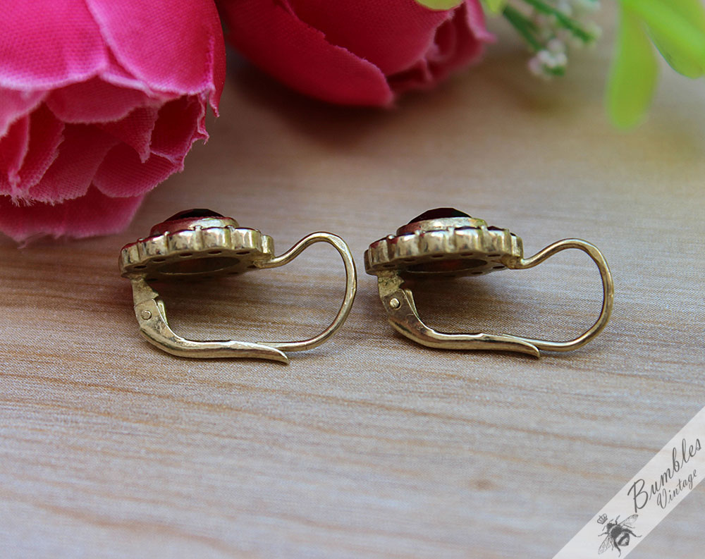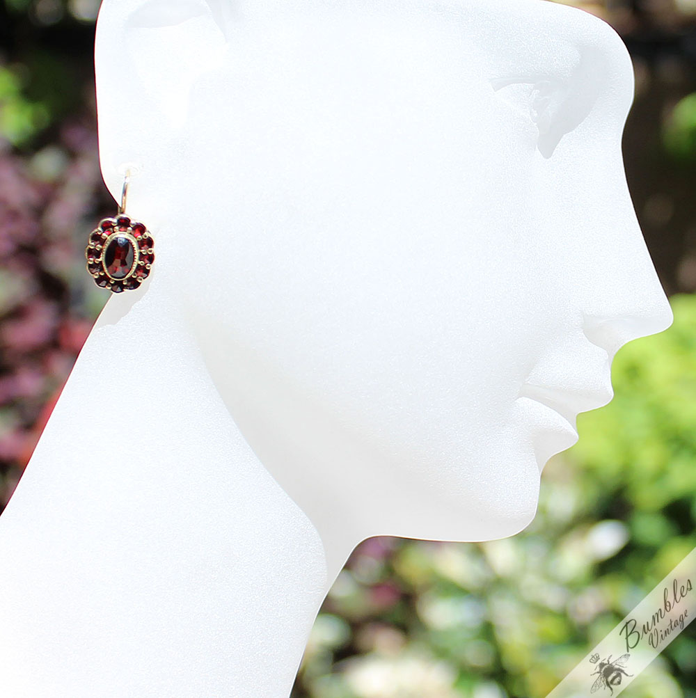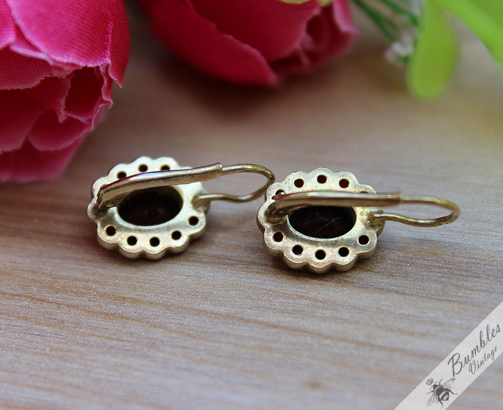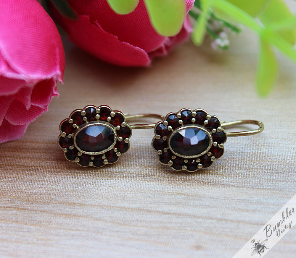 Beautiful Vintage Flower Bohemian Garnet Earrings 900 Silver Gilt