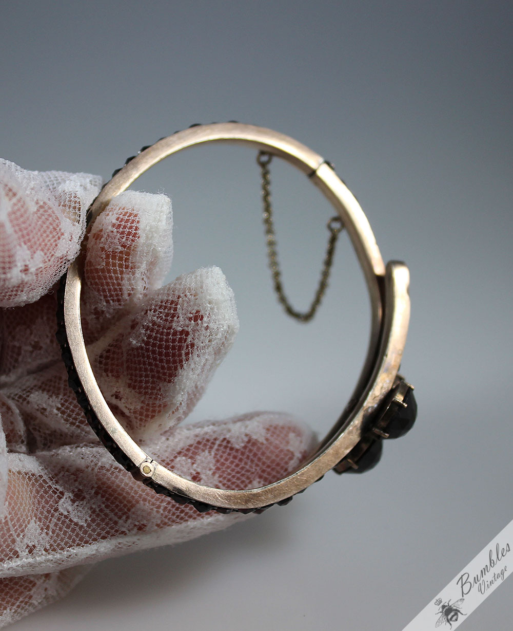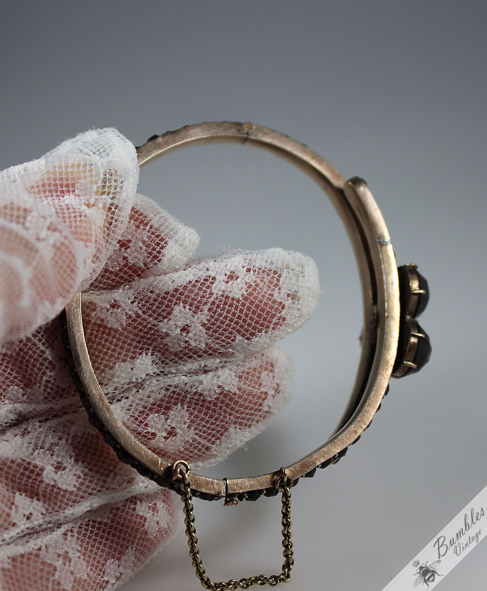 c1900-antique-rose-cut-bohemian-garnet-hinged-victorian-bangle-with-3-large-garnets-s98