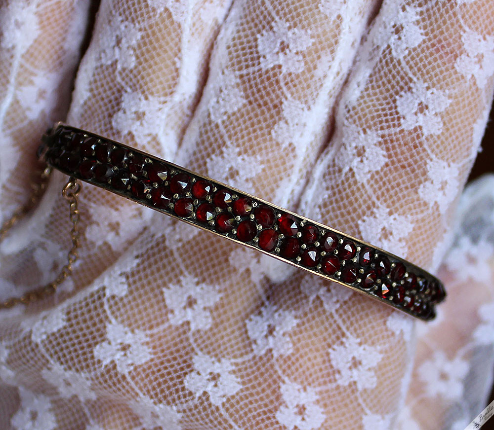 c1900s Antique Bohemian Garnet Bracelet, Victorian Era