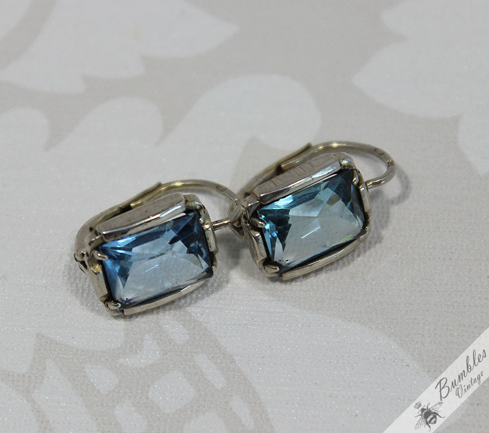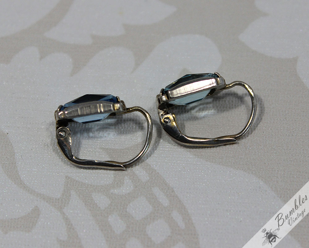 c1930 Art Deco Antique European Bohemian Silver Lever Earrings Aquamarine