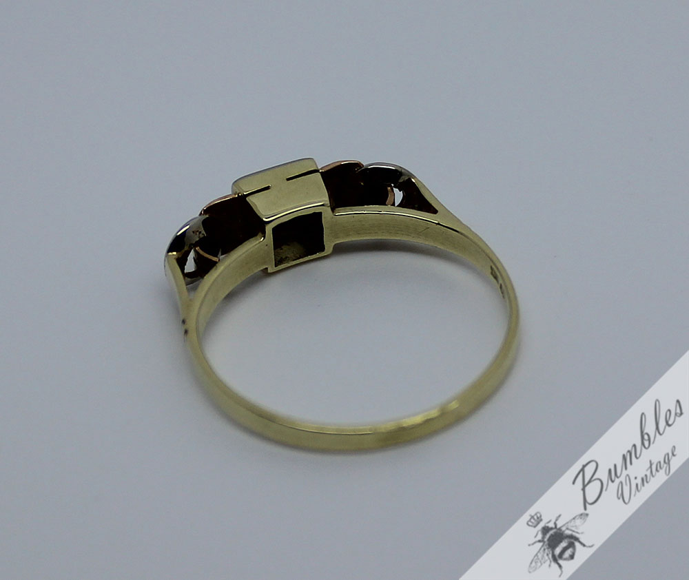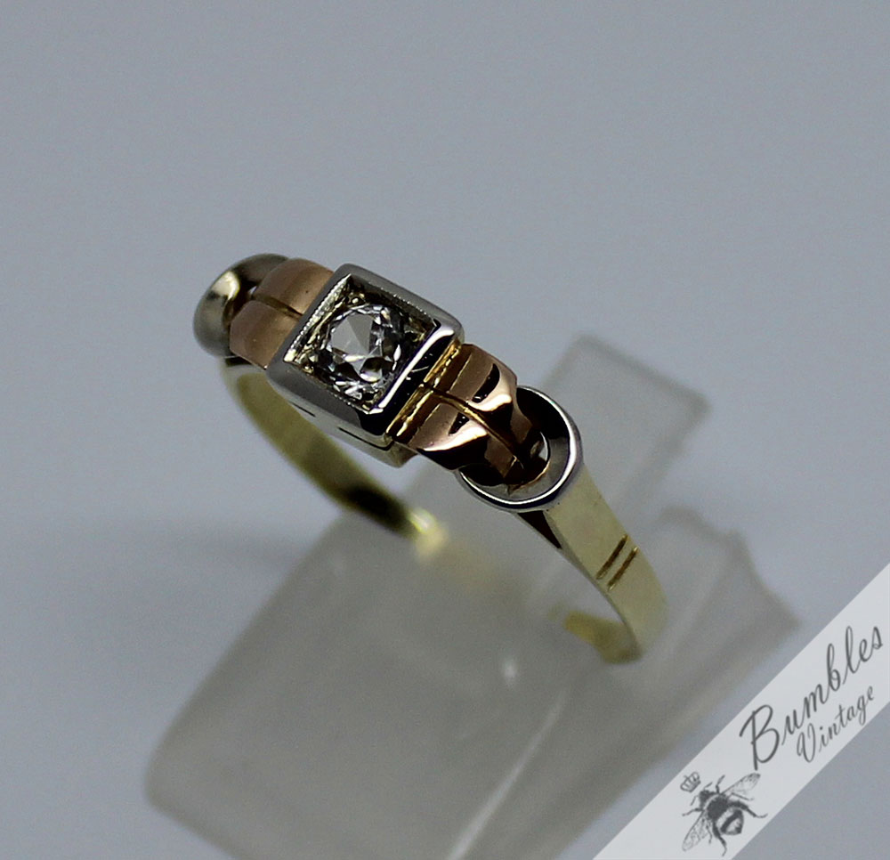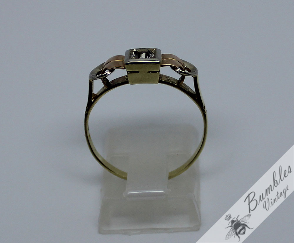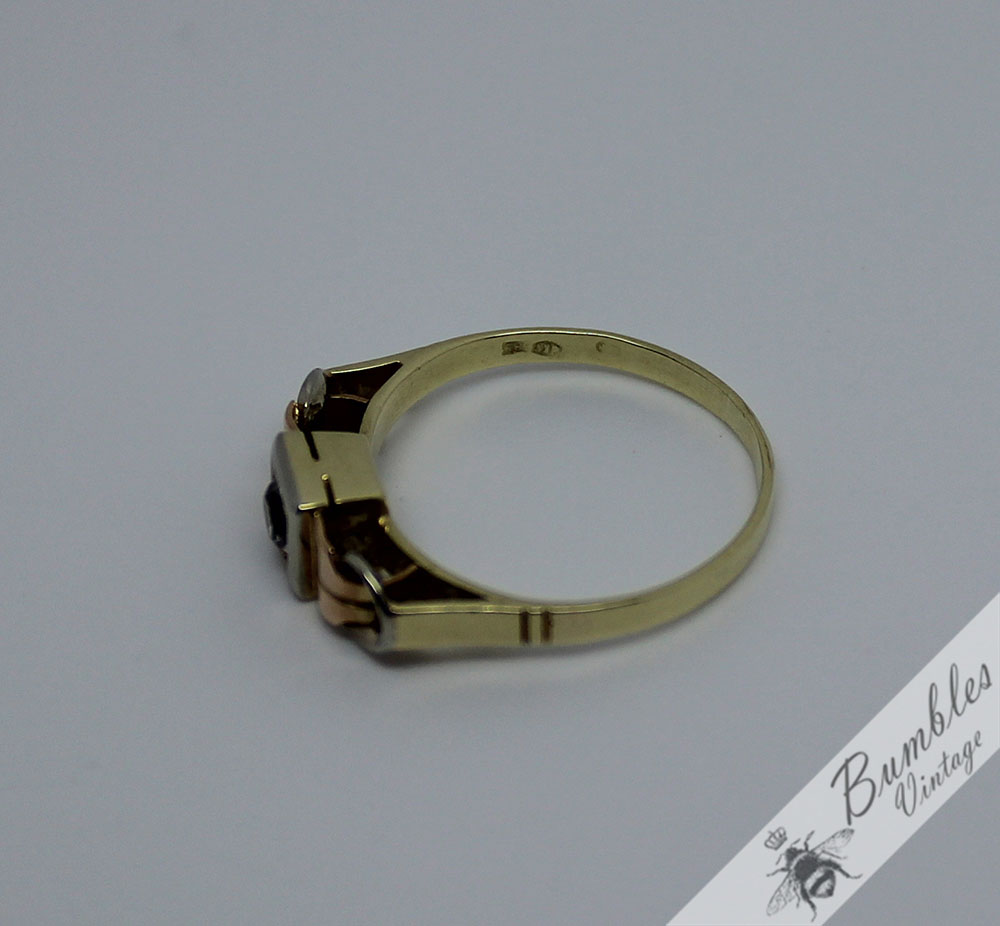 c1930 Vintage Art Deco 14k Rose, Yellow & White Gold Ring White Sapphire sz P, 7 3/4
