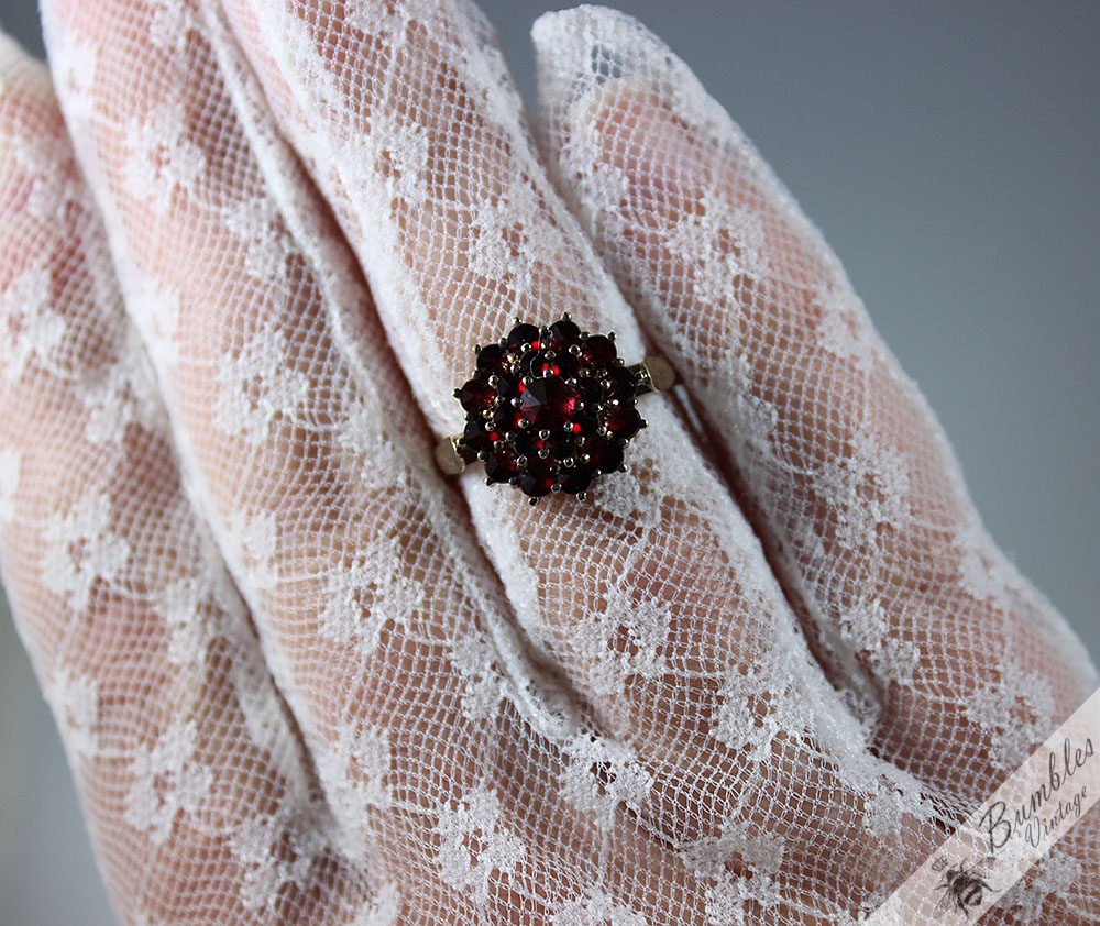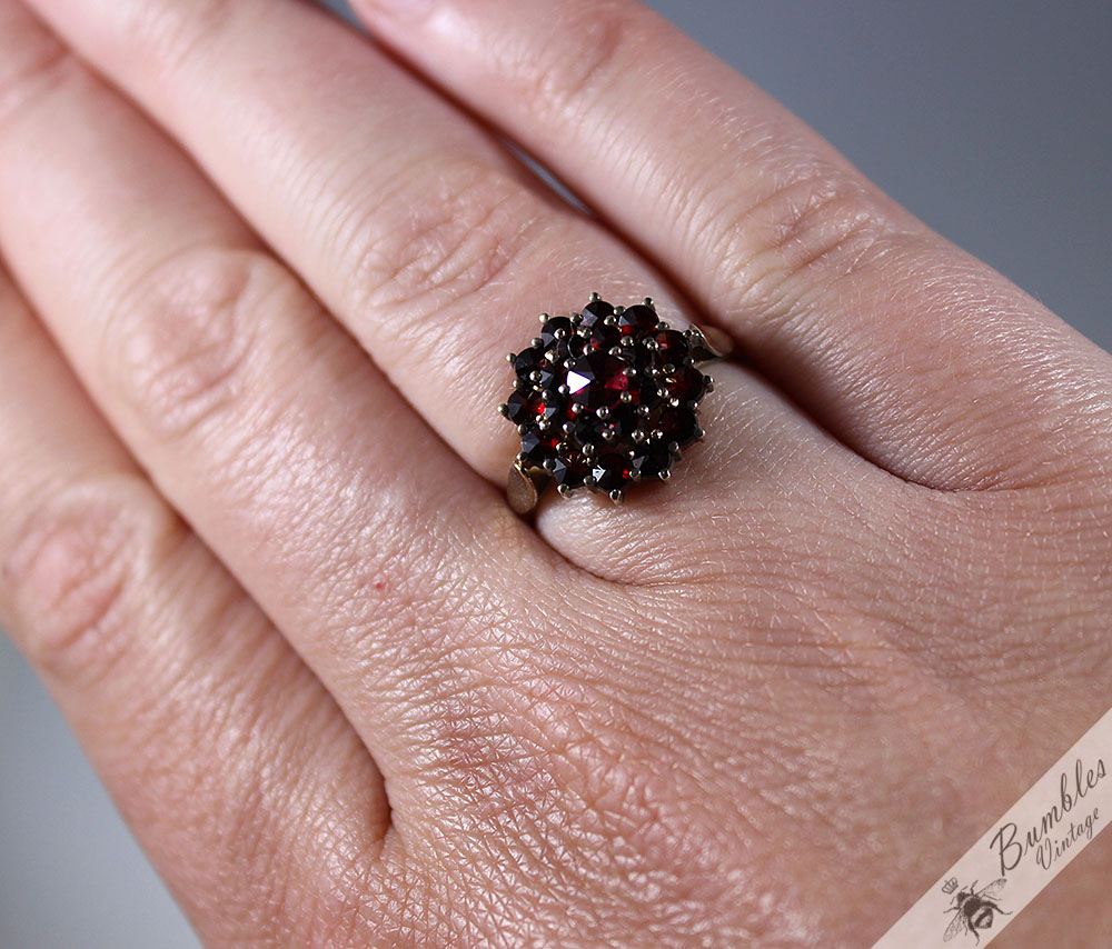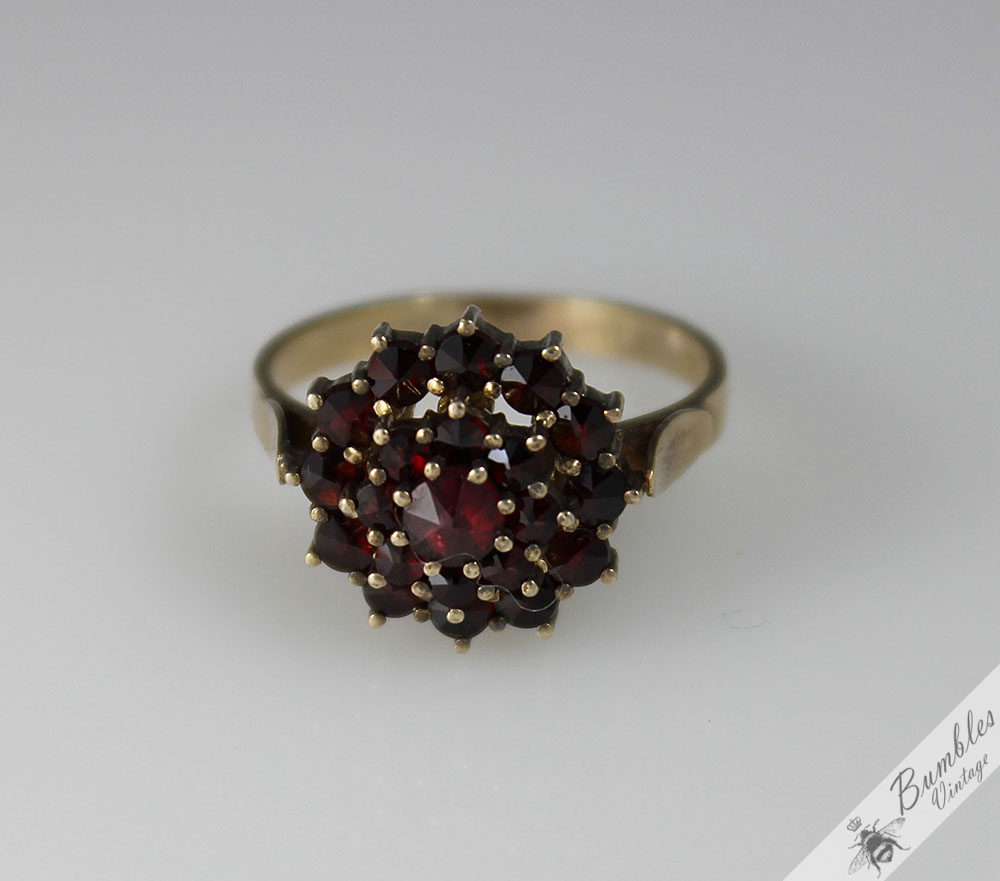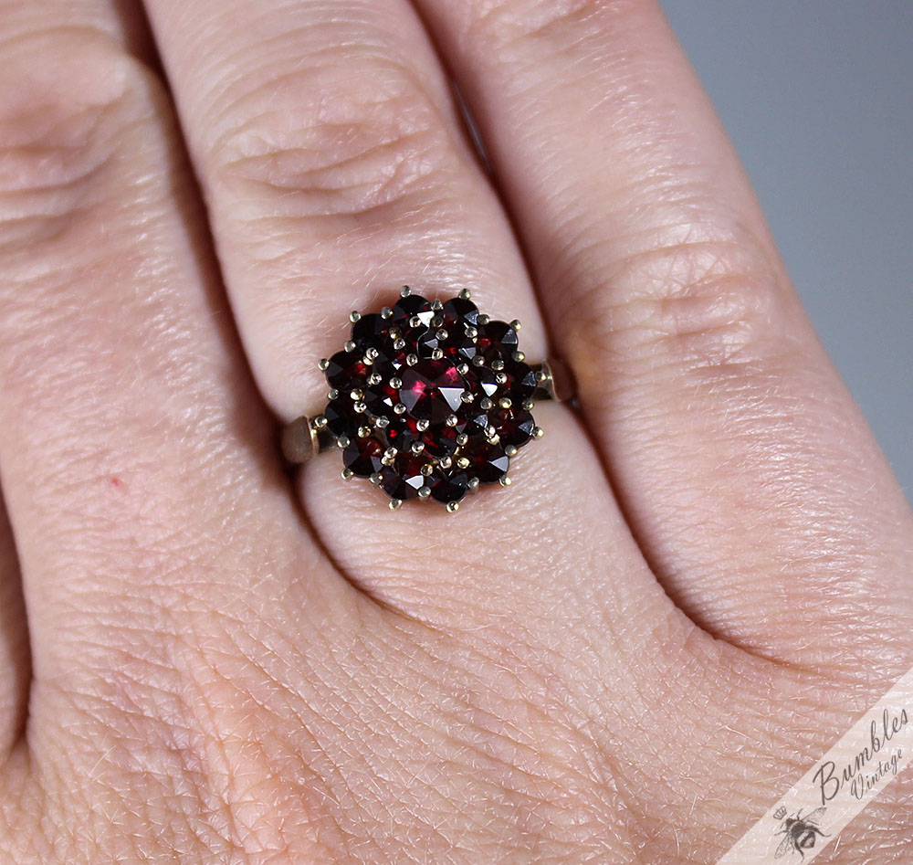 c1960 Vintage Rose Cut Bohemian Garnet Classic Flower Cluster Ring