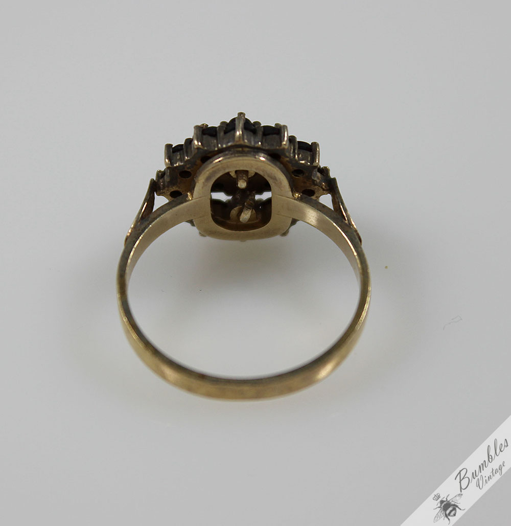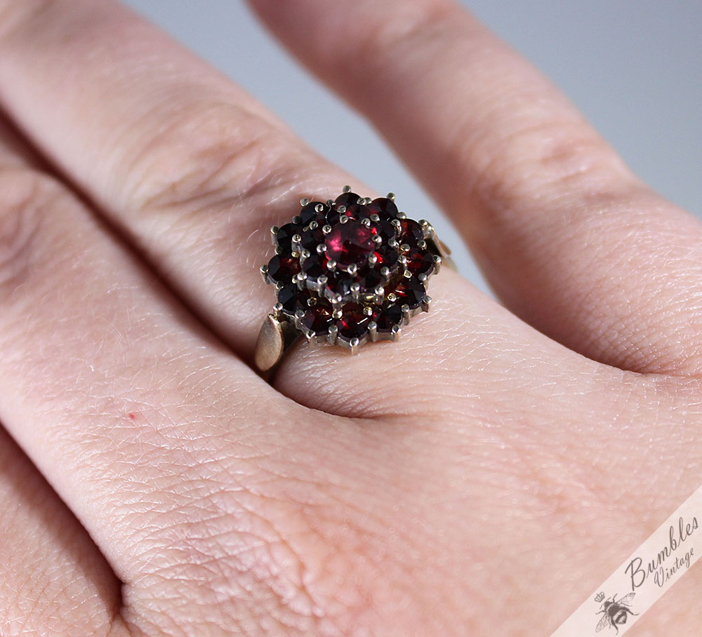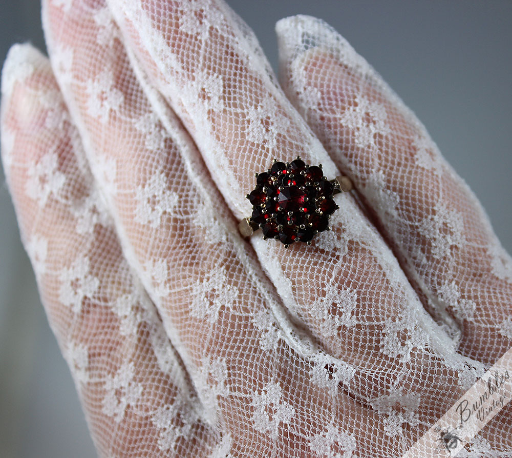 c1960 Vintage Rose Cut Bohemian Garnet Classic Flower Cluster Ring