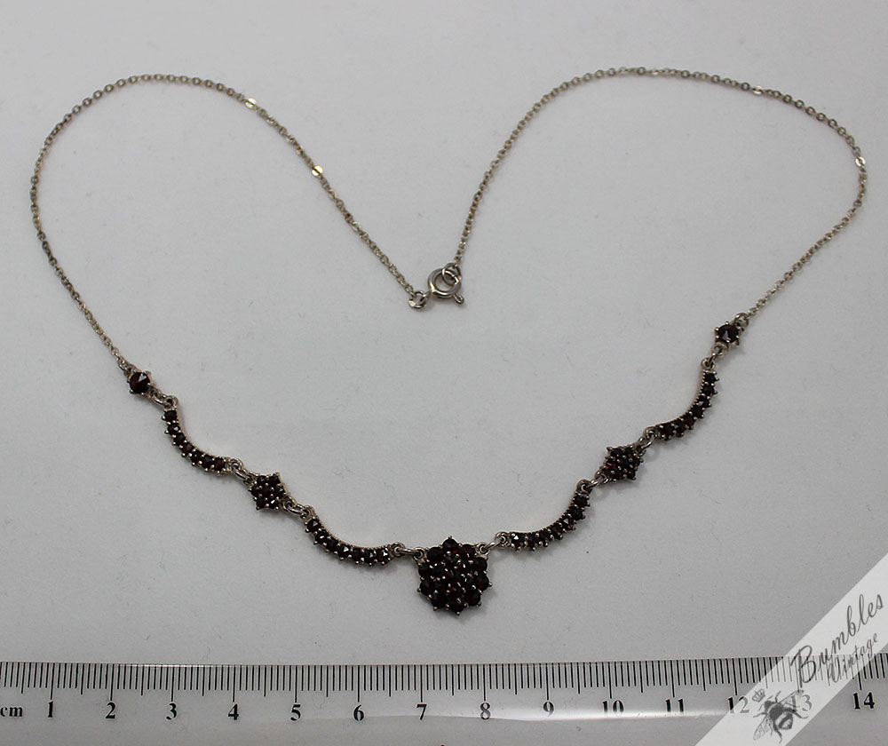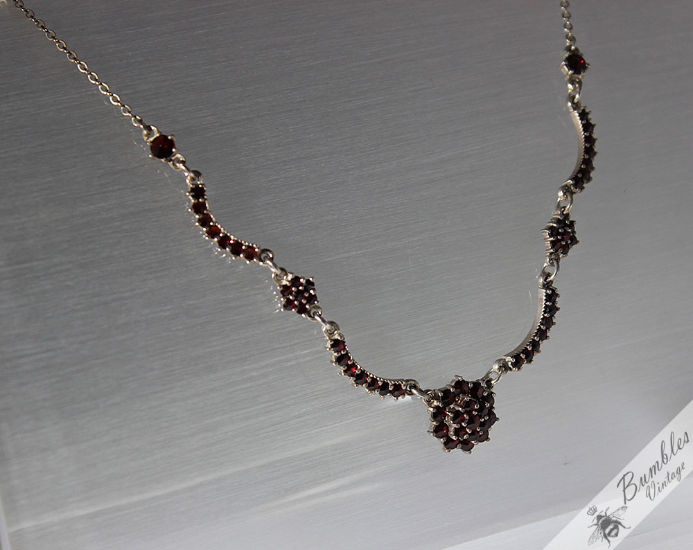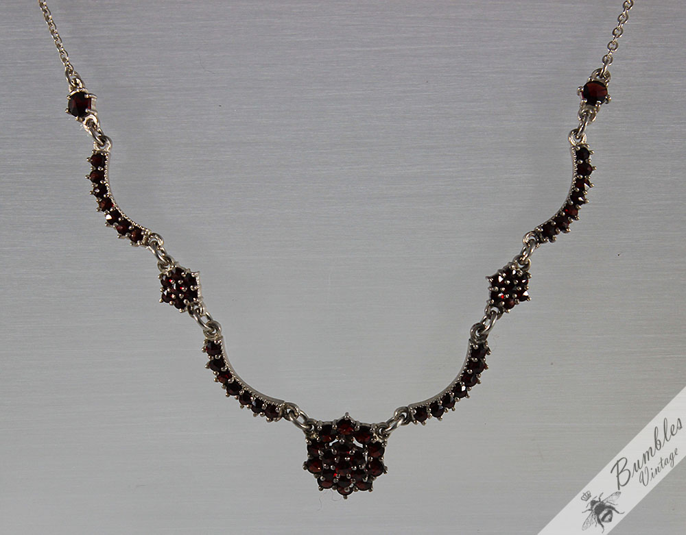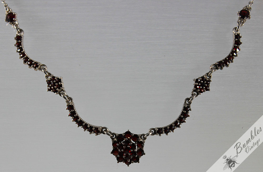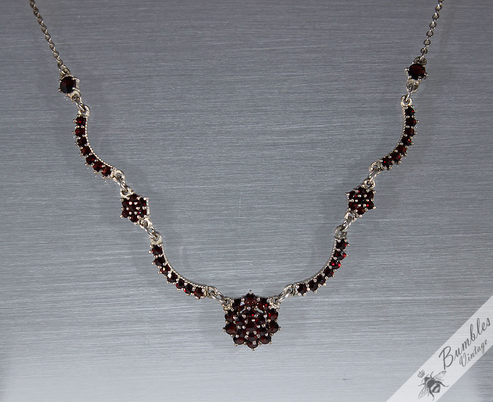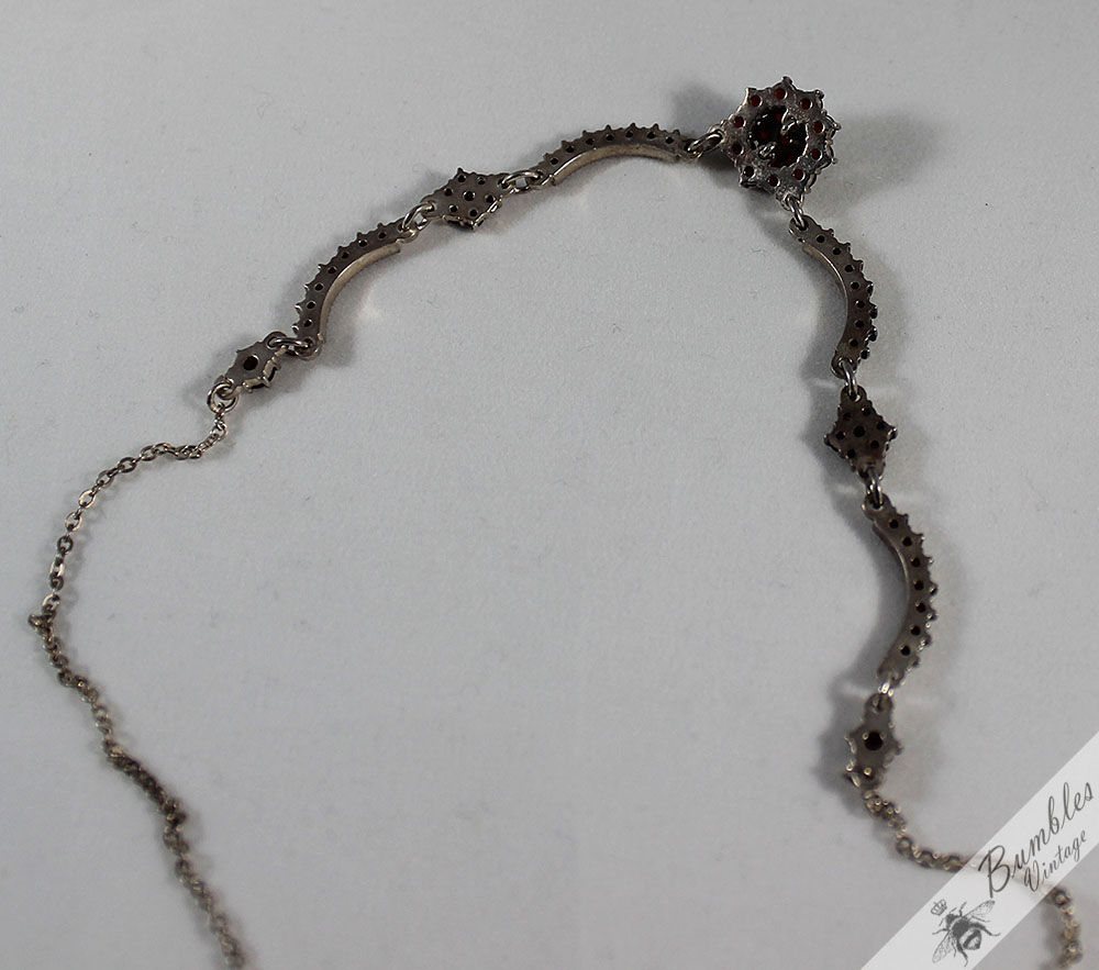 c1960-vintage-rose-cut-bohemian-garnet-european-900-silver-lavalier-necklace-s87