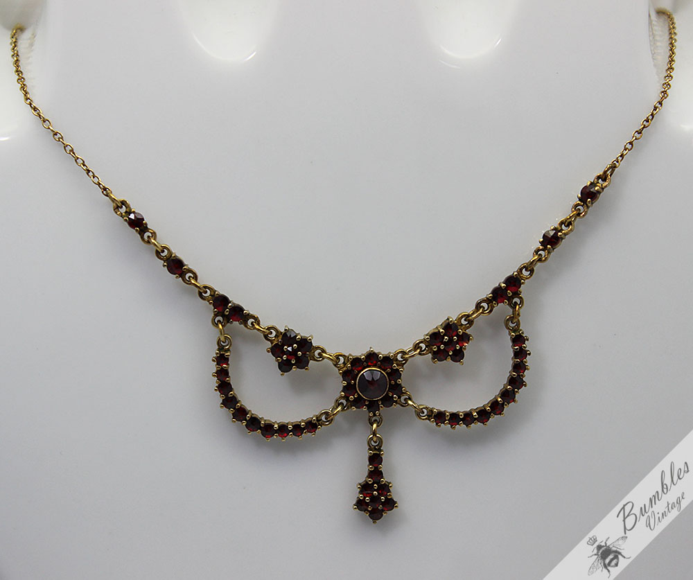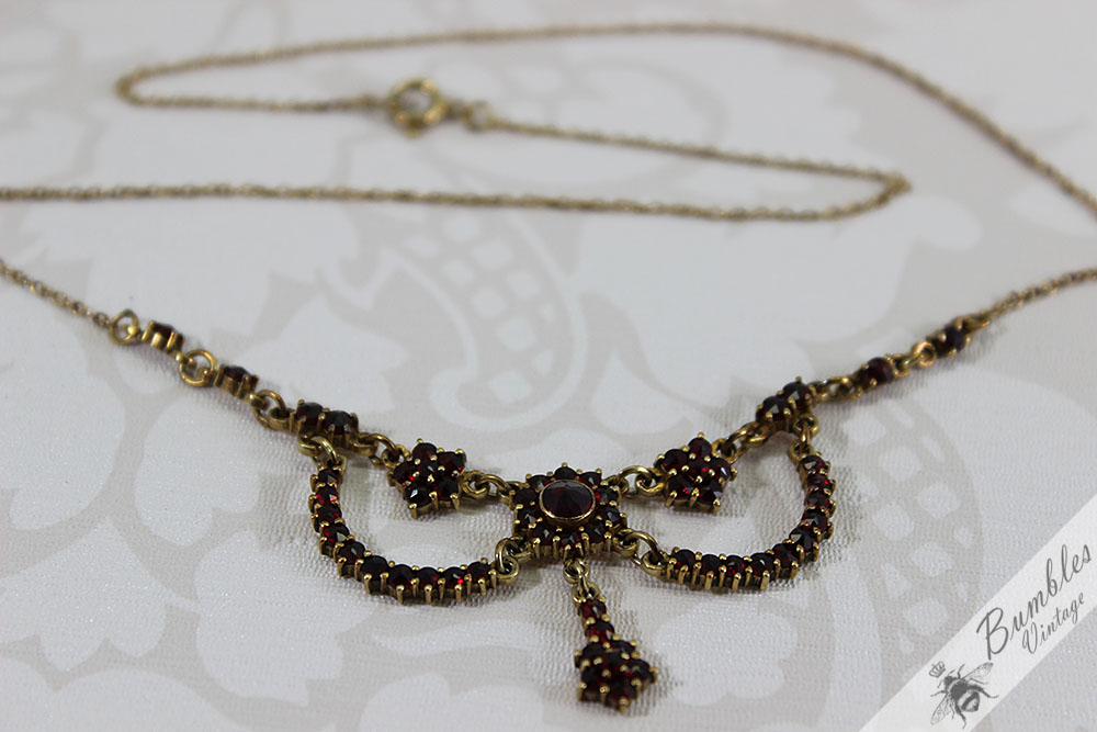 c1960s Vintage Rose Cut Bohemian Garnet Art Nouveau Necklace
