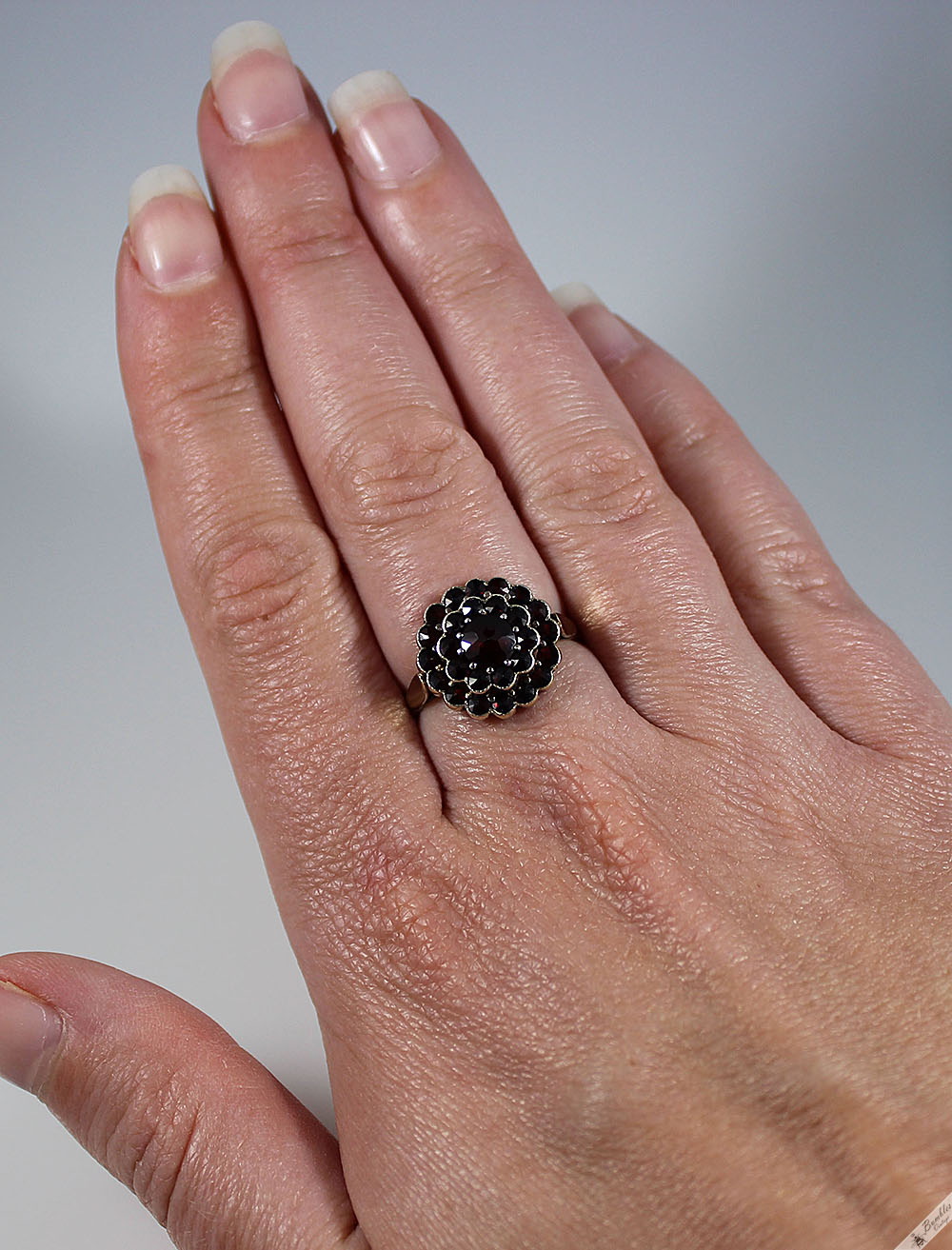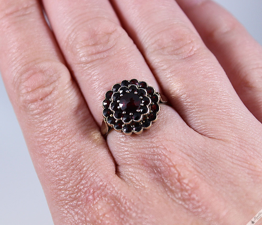 vintage-bohemian-garnet-flower-cluster-ring-gold-over-900-silver-czech-european-r53