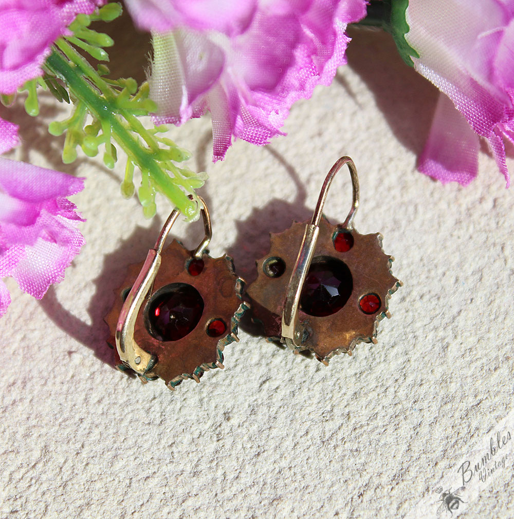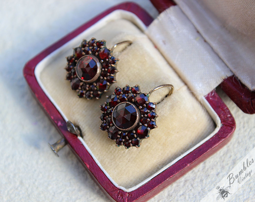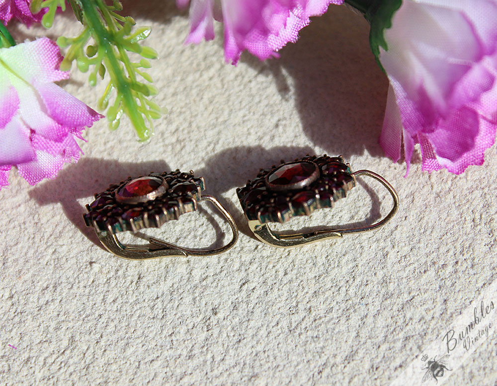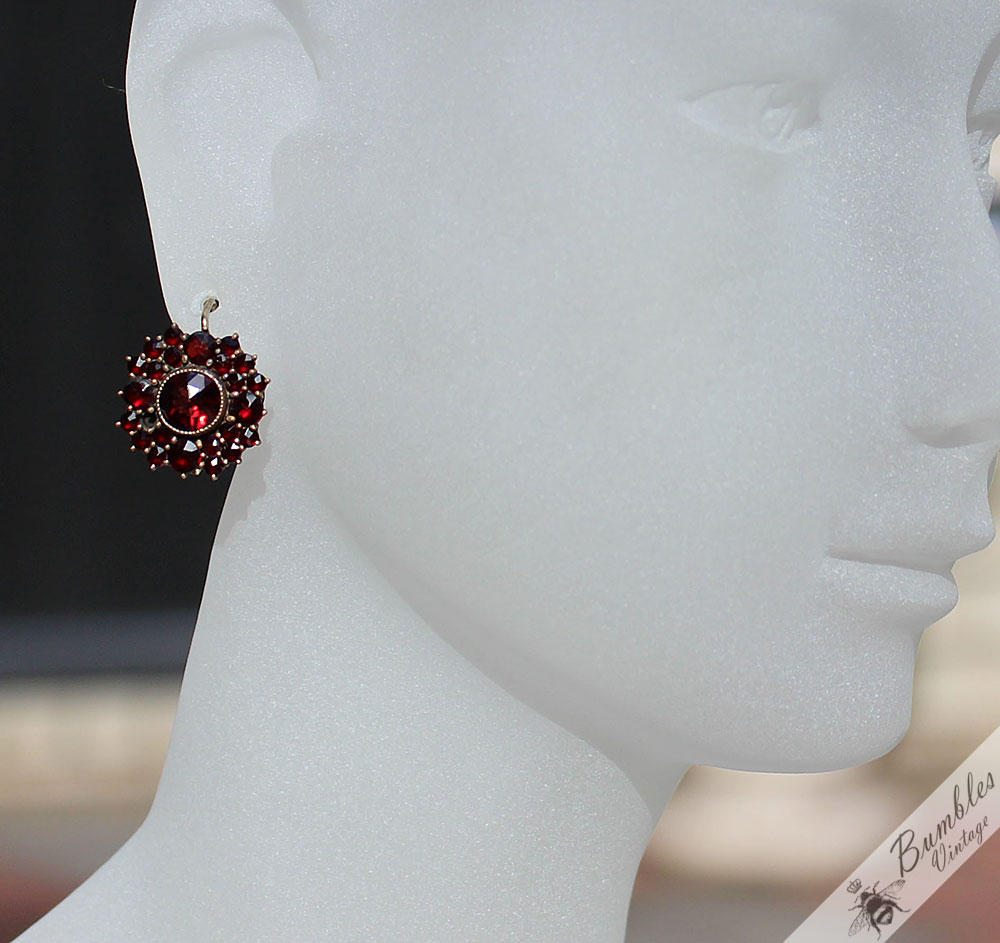 Large Antique Bohemian Garnet Cluster Earrings Tombak