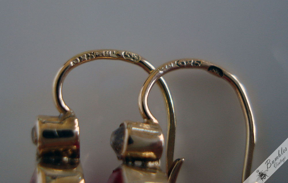 vintage-14k-gold-european-lever-earrings-simulated-rubies-s20