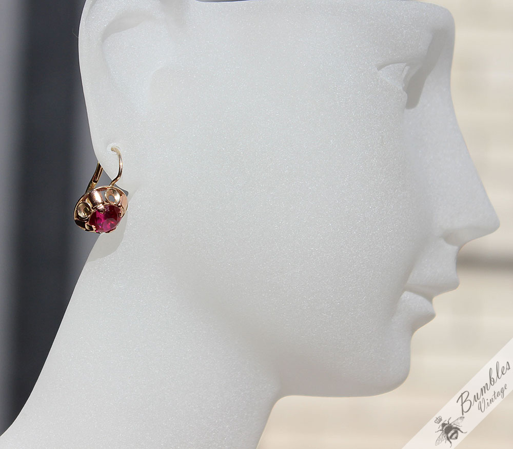 vintage-9k-gold-lever-earrings-russian–synthetic-rubies-s219