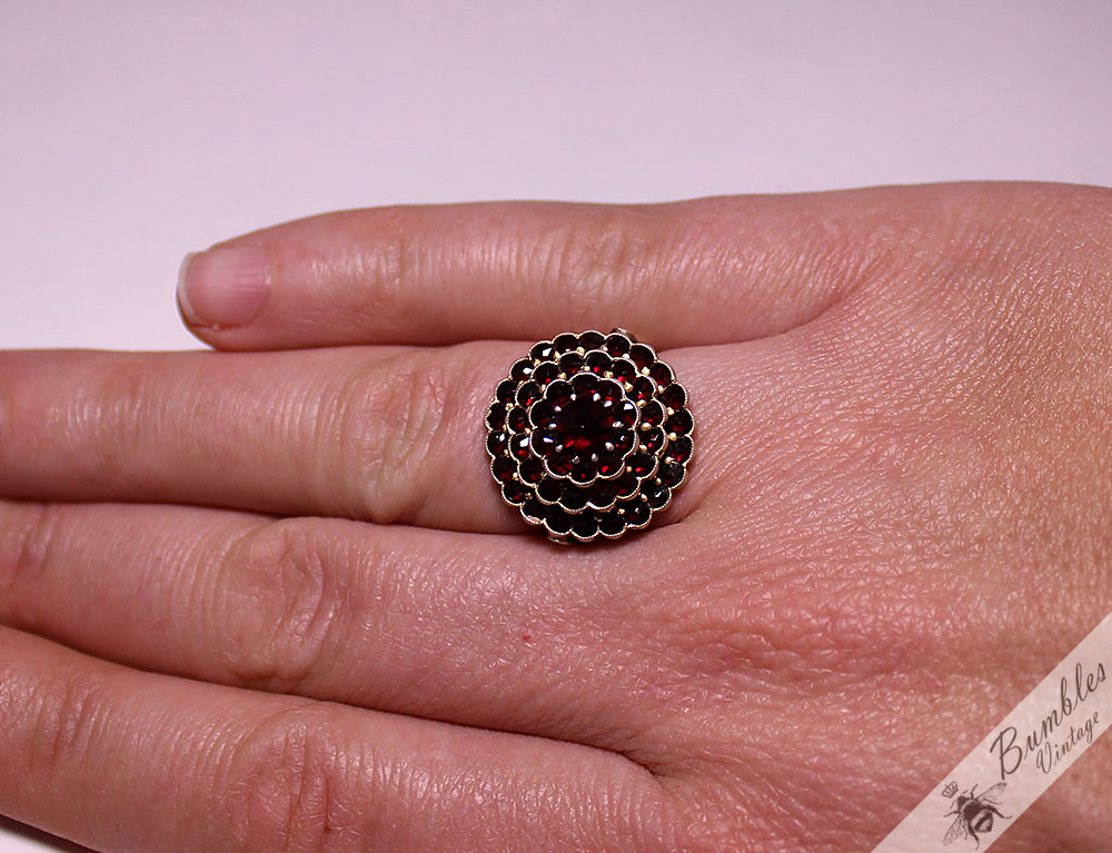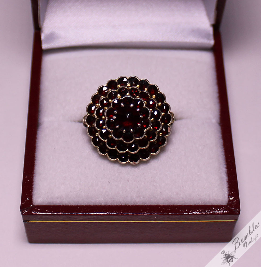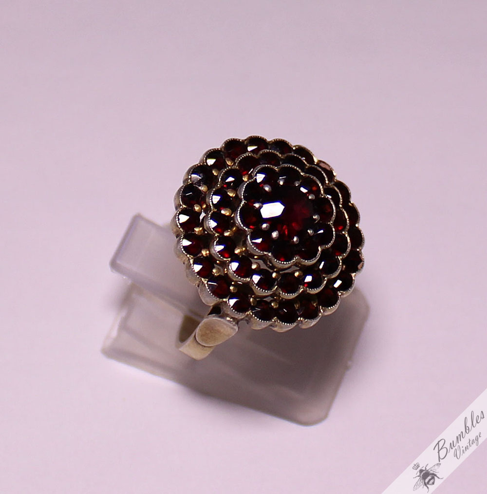 Vintage Bohemian Garnet Floral 4 Tier Silver Czechoslovakian Cocktail Ring sz O, 7.25