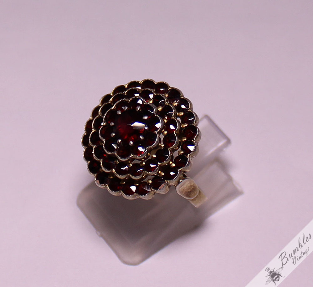 vintage-bohemian-garnet-floral-4-tier-silver-czechoslovakian-ring-sz-o–7-25-s181