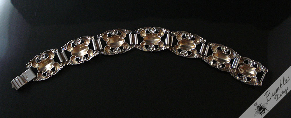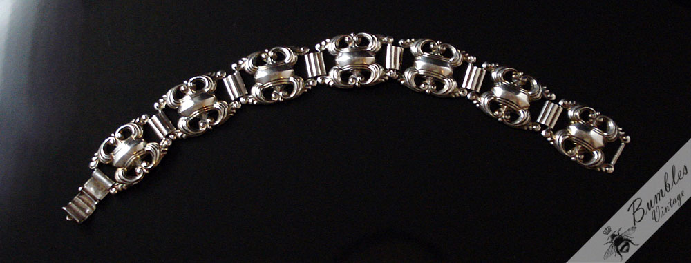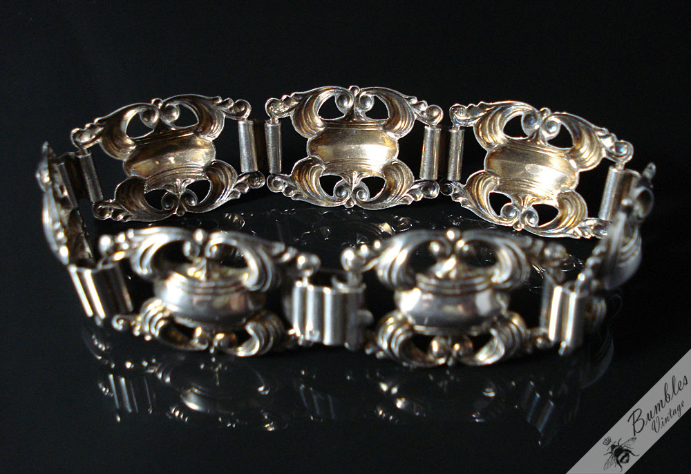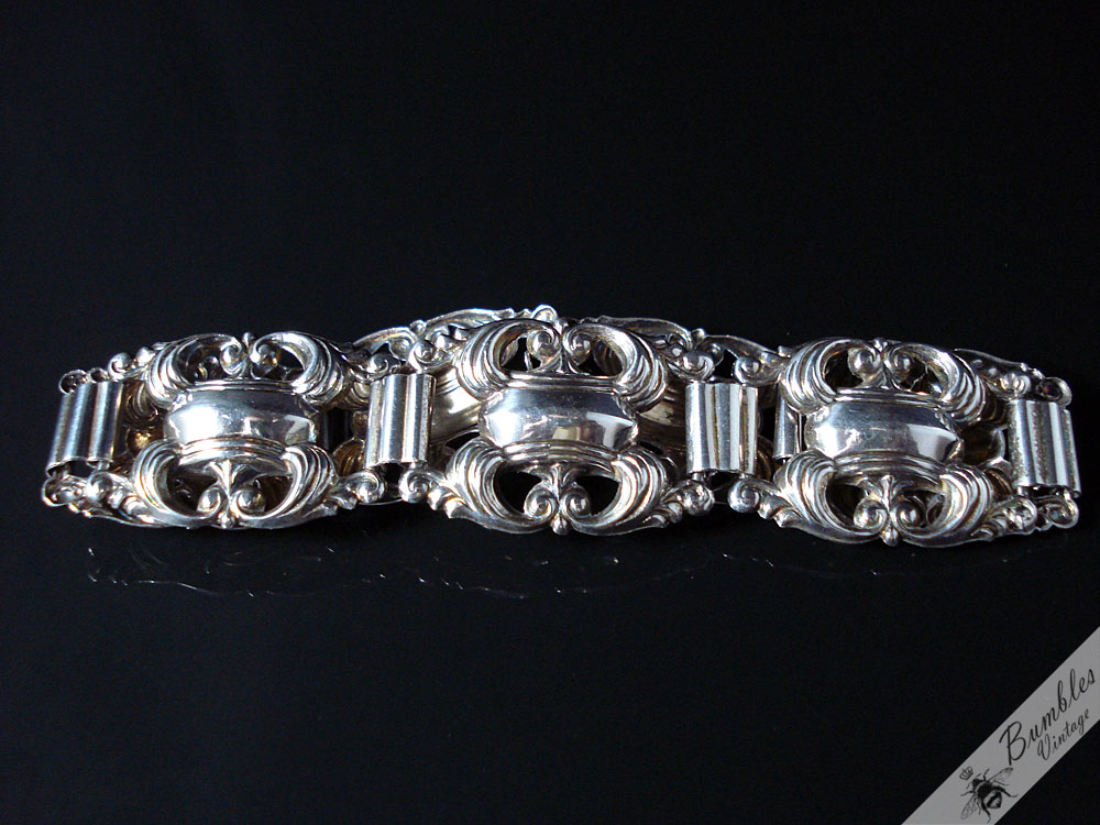 Vintage Ornate Bohemian Silver Link Bracelet c1940s