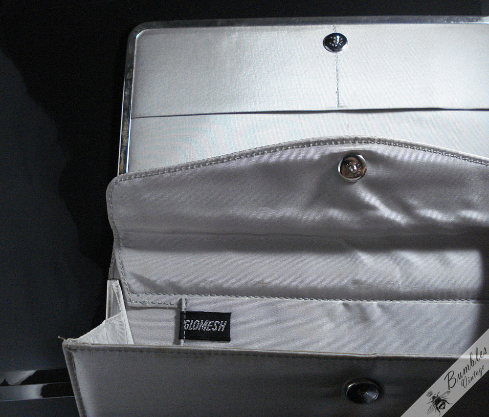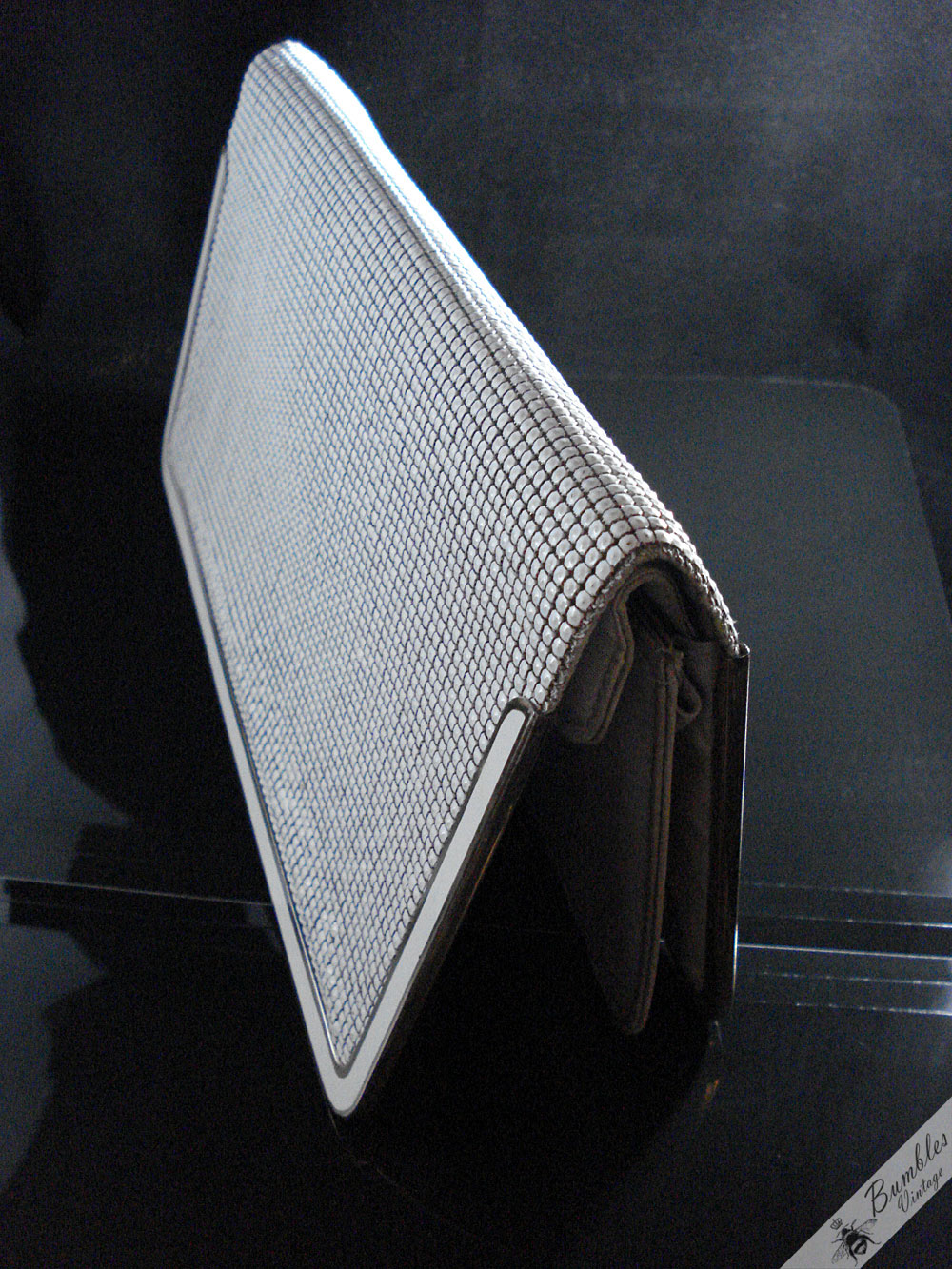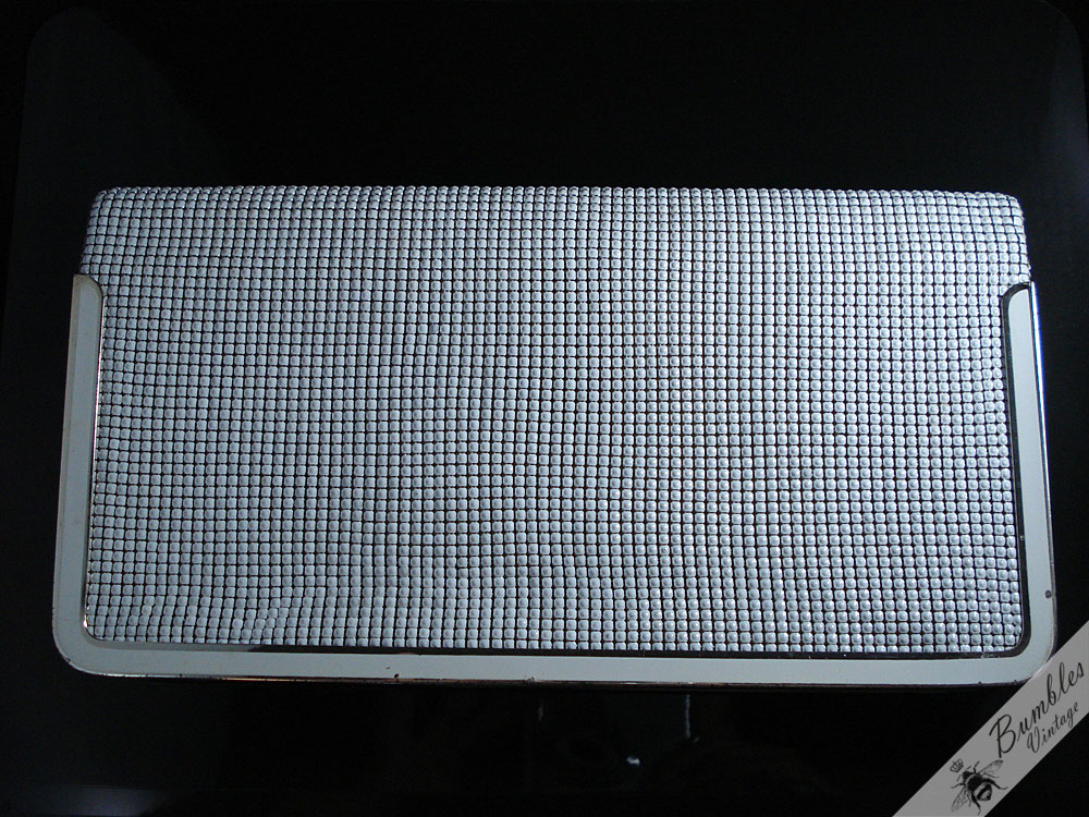 Vintage Retro Genuine Glomesh Long Wallet Clutch Purse White & Gold