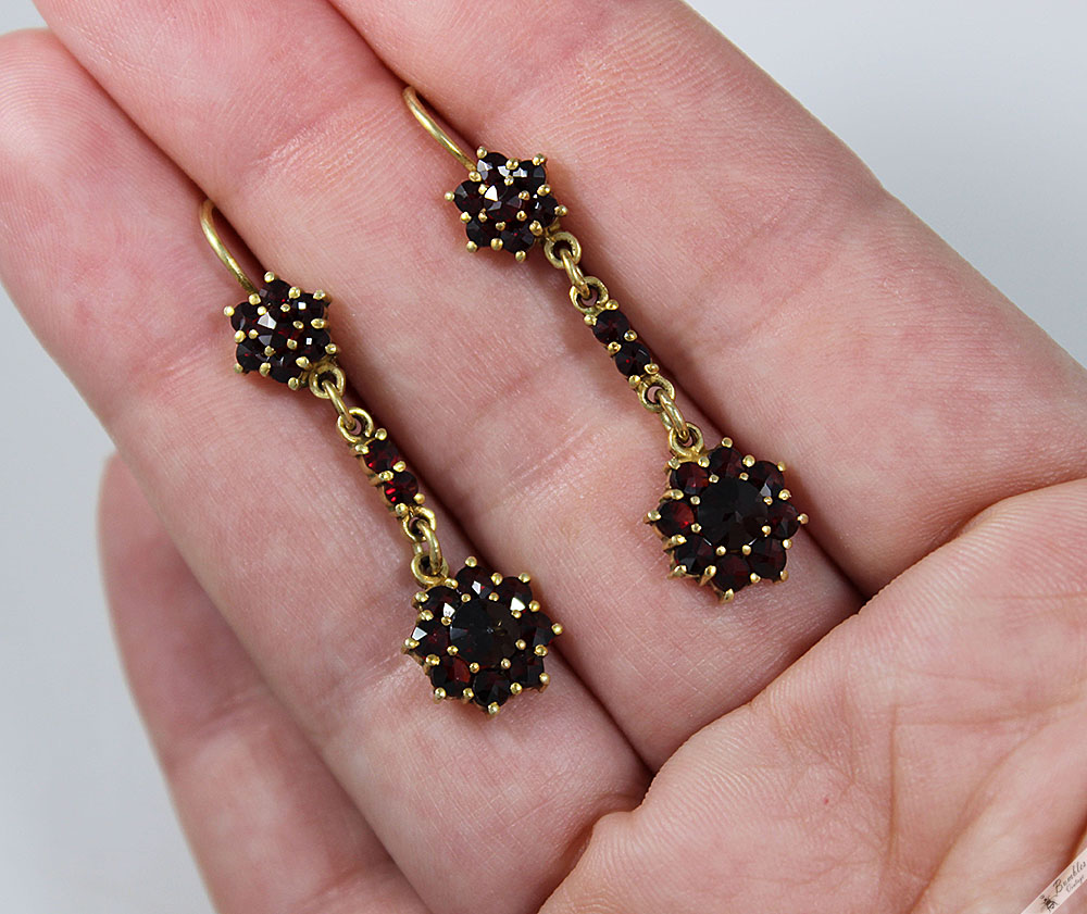 vintage-rose-cut-bohemian-garnet-dangle-drop-earrings-lever-flower-c1960-s63