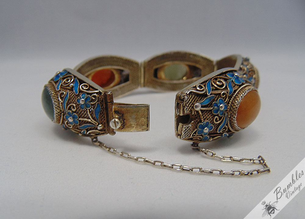 vintage-silver–enamel-filigree-chunky-bracelet-c1930s